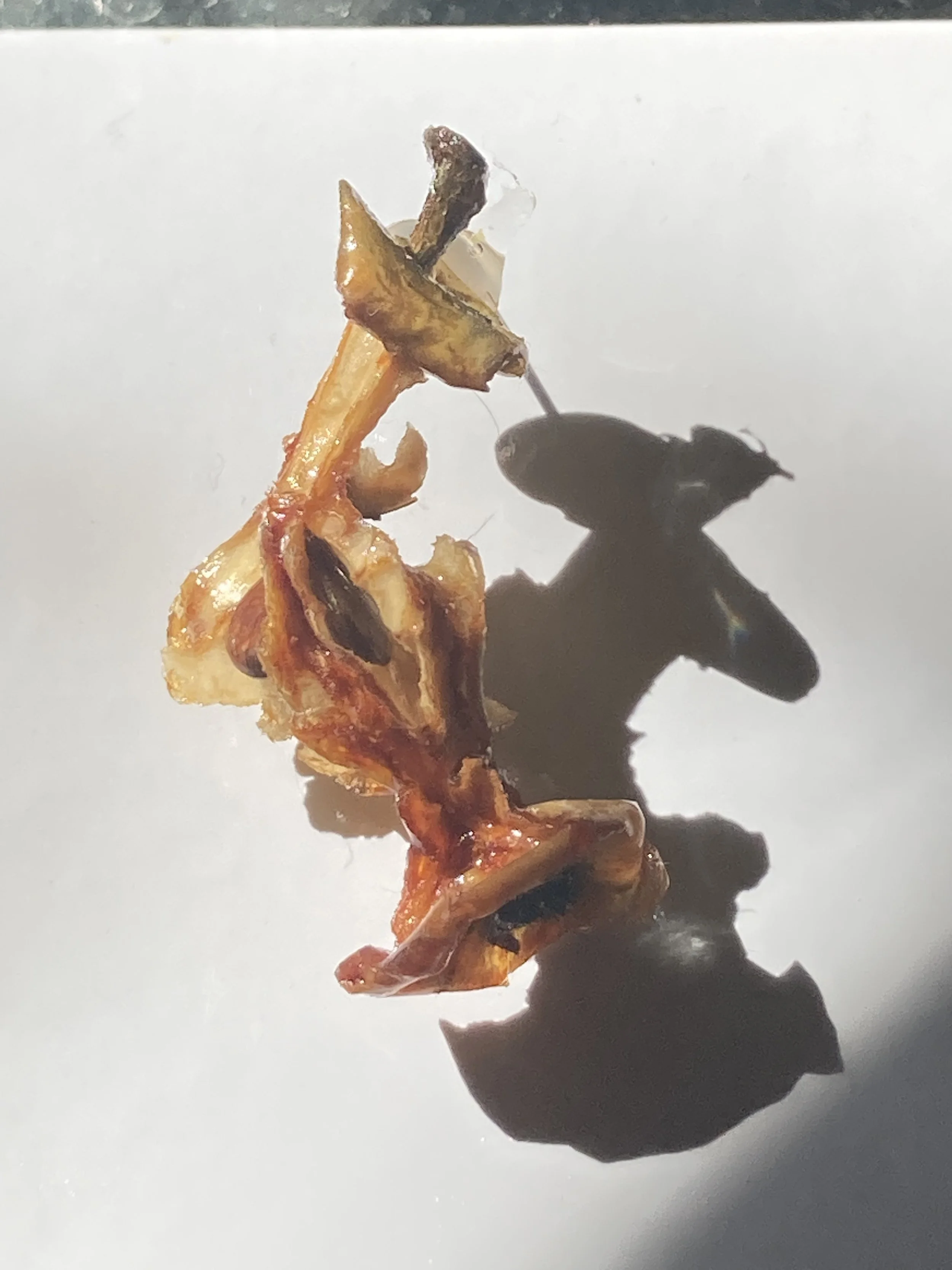 The moon is resting on the stubs of bitten apple hearts. The scraps, repeated fragments of the daunting nights. Dried leftovers scattered on a bedside table with their crooked rusty shapes, embellished with poisonous seeds.